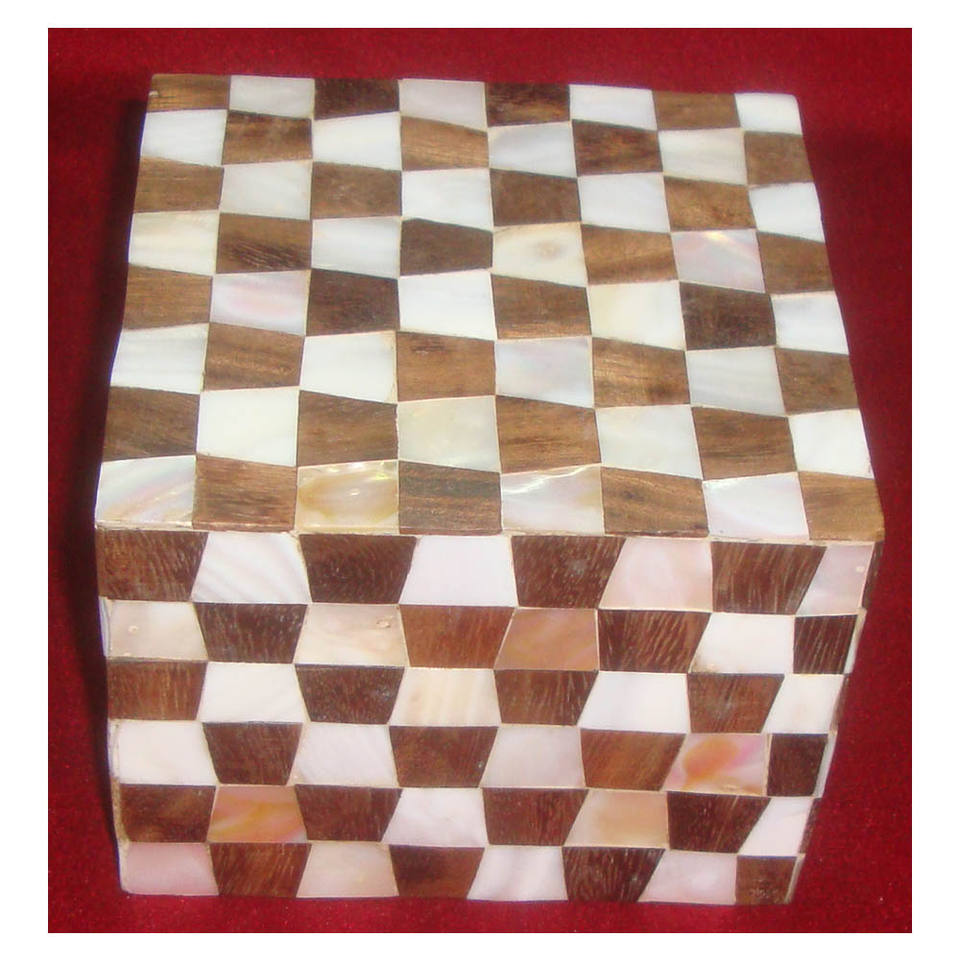 Boîte à bijoux incrustée d'os de nacre naturelle