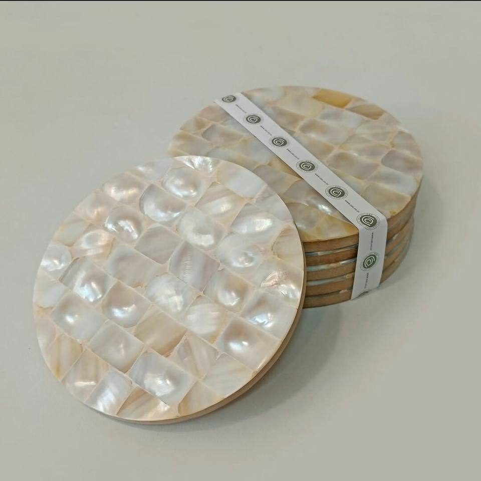 Ensemble de 4 dessous-de-verre en nacre naturelle, supports et tapis en MDF, pour vaisselle et boissons, au meilleur prix