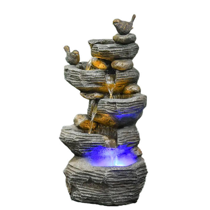 Fontaine d'eau de rocaille en pierre de montagne naturelle, ornement en résine pour jardin, cour et décoration murale avec un flux d'eau apaisant