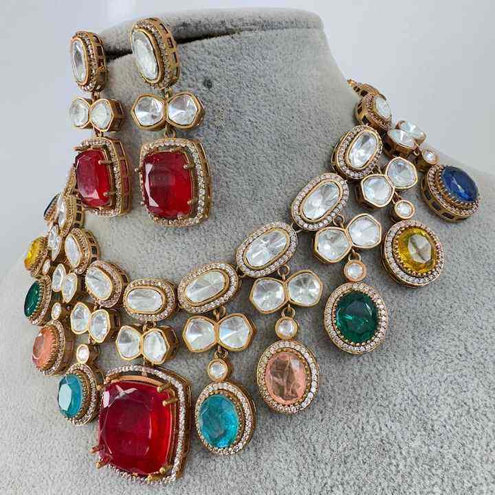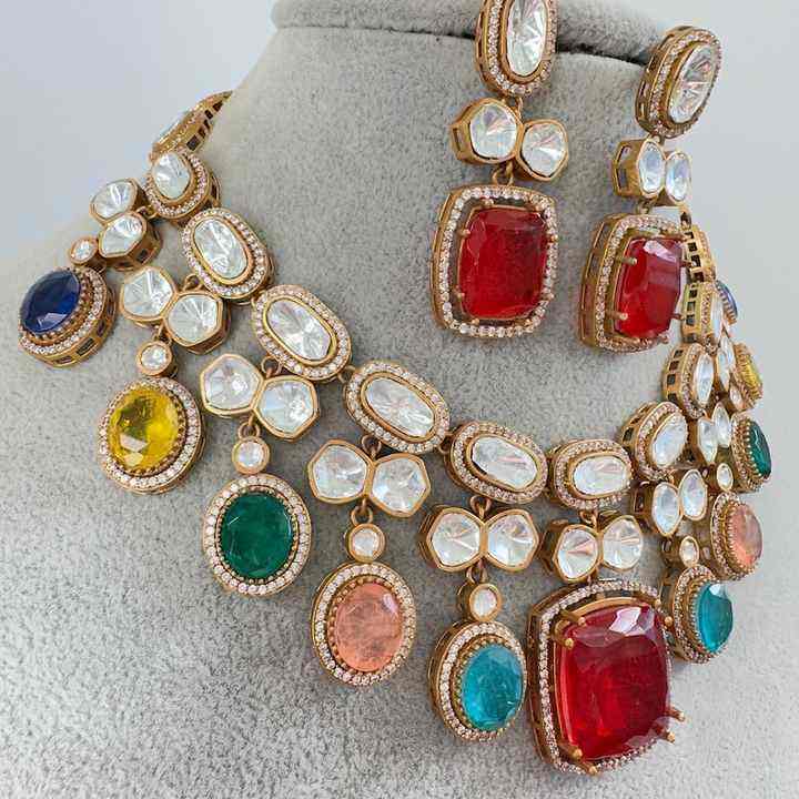 Natural Multi Color Duplet Moissanite Polki Choker Necklace Indian Wedding Bridal Jewelry Bollywood Sabyasachi Necklace