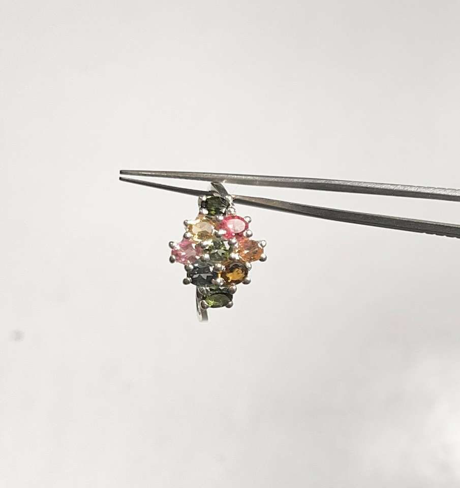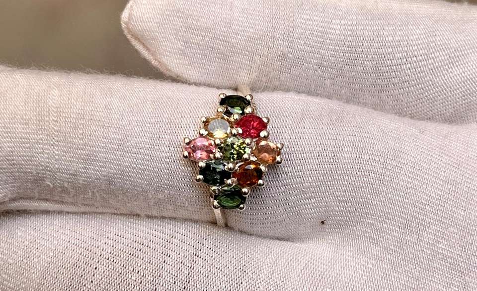Natural Multi-Color Tourmaline Faceted Oval Gem Stones 92.5 Purity Silver Classic Women's Wedding Ring for Gift