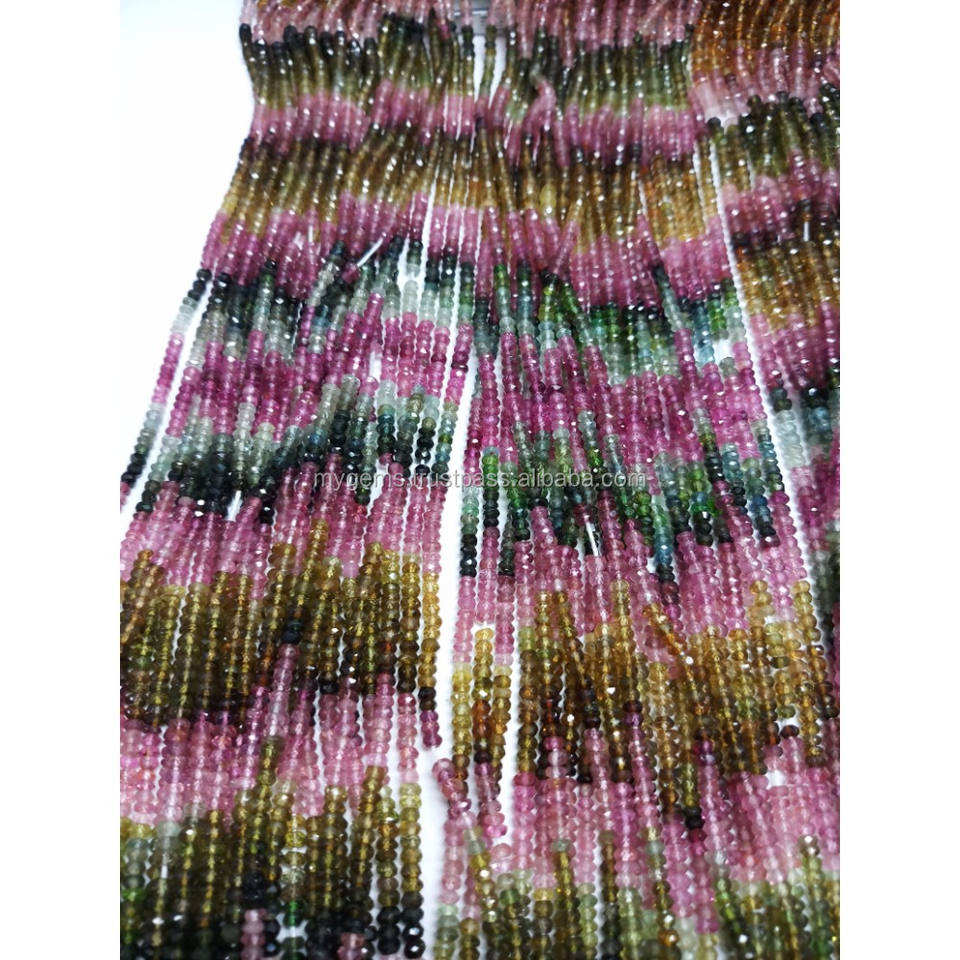 Perles rondes facettées en tourmaline naturelle multicolore 3-4,5 mm, longueur 12,50 pouces, qualité AA+, 2 brins, MOQ, fabrication de bijoux