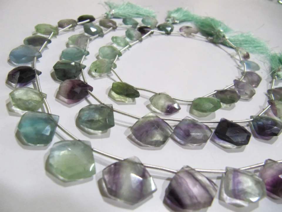 Perles multicolores naturelles Multi Flourite Fluorite en forme de diamant Coupe à facettes de haute qualité EMINENT JEWEL Marque Taille 14-15mm Strand