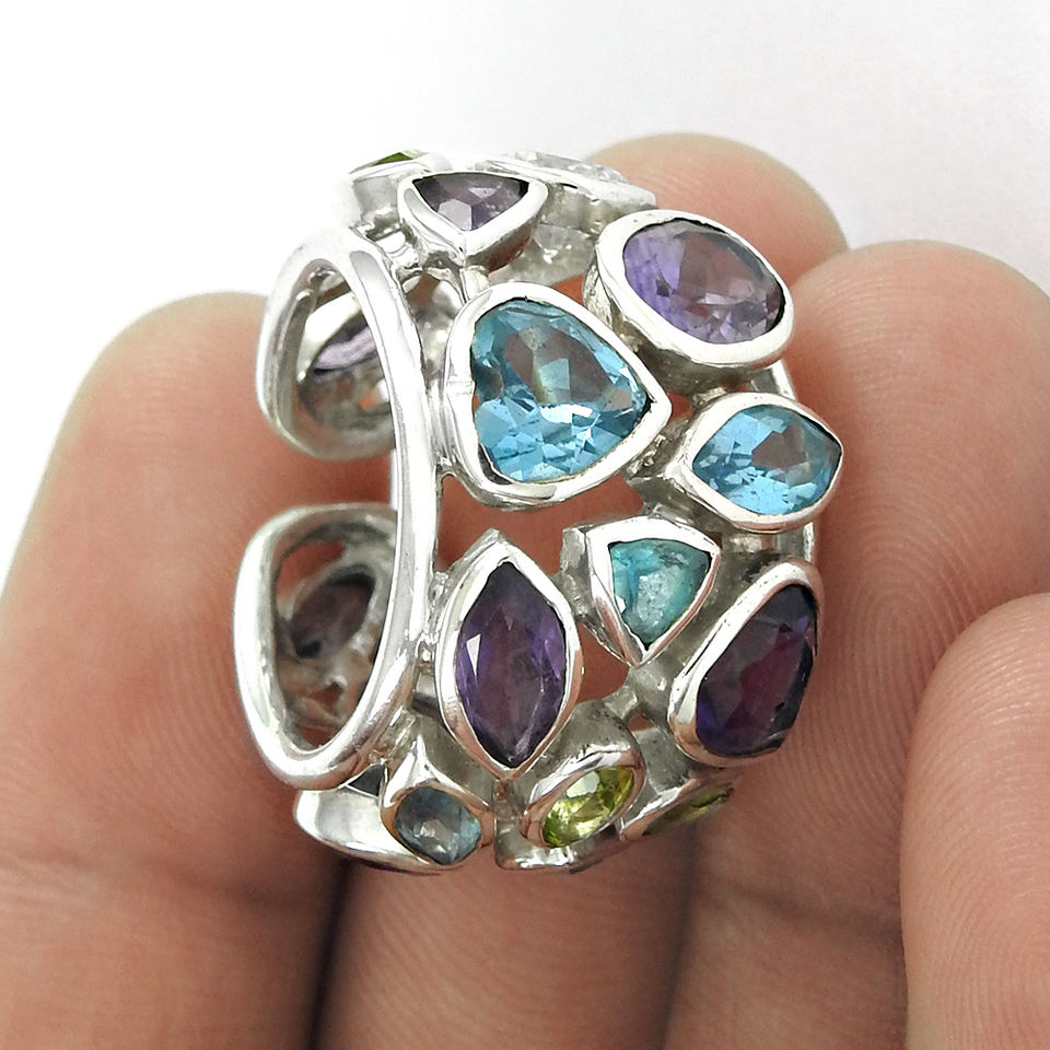 Bague en argent sterling 925 avec plusieurs pierres précieuses naturelles au design unique pour elle Bijoux de bohème faits à la main Prix de gros Fournisseurs en vrac