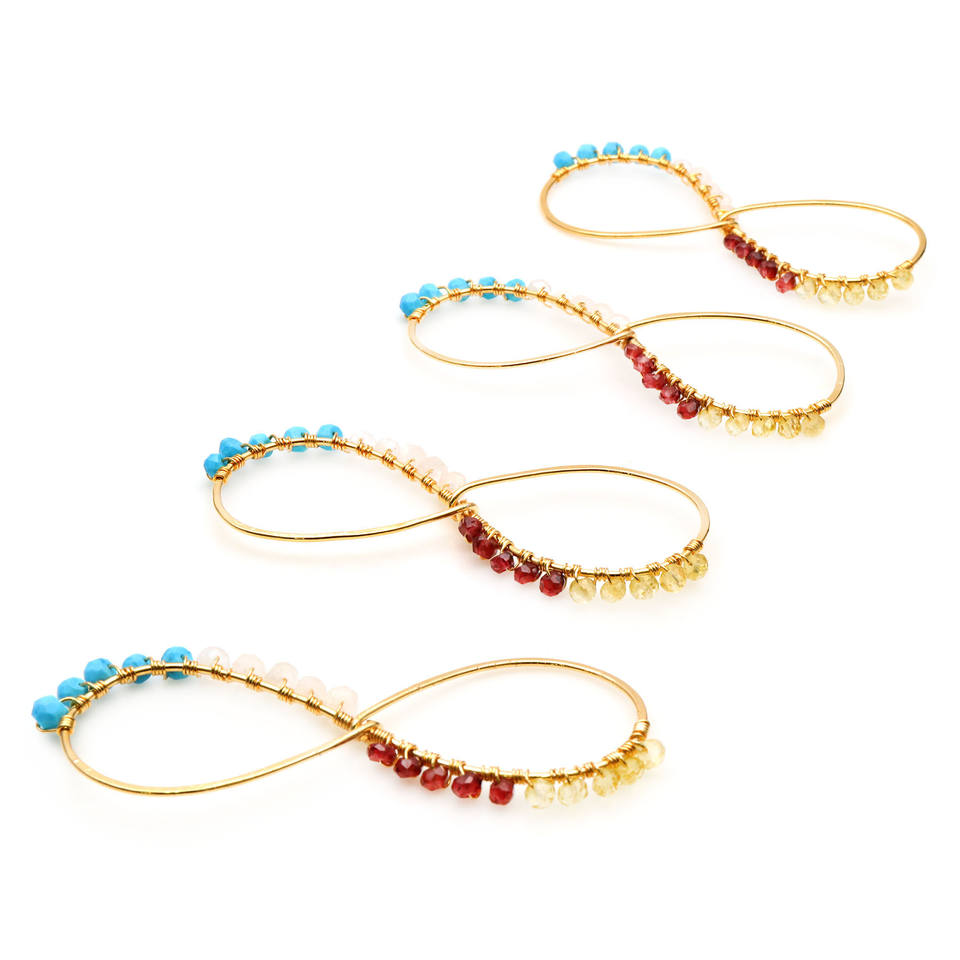 Enveloppe de fil de perles de pierres précieuses multiples naturelles à facettes 60x56 MM connecteur en forme d'infini fabrication de bijoux