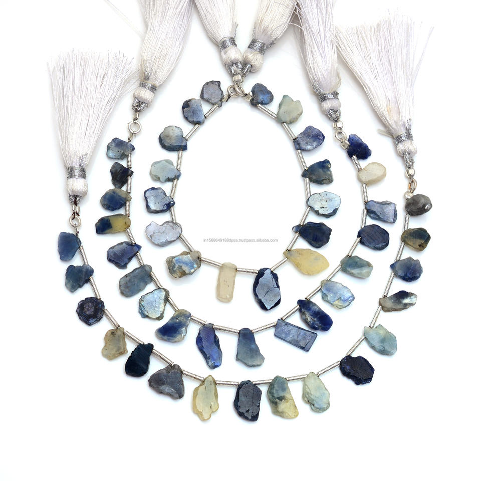 Perles faites à la main en forme de tranche lisse multi saphir naturel de qualité supérieure 6 pouces 8X11 MM 42 carats fabrication de bijoux pierre naturelle