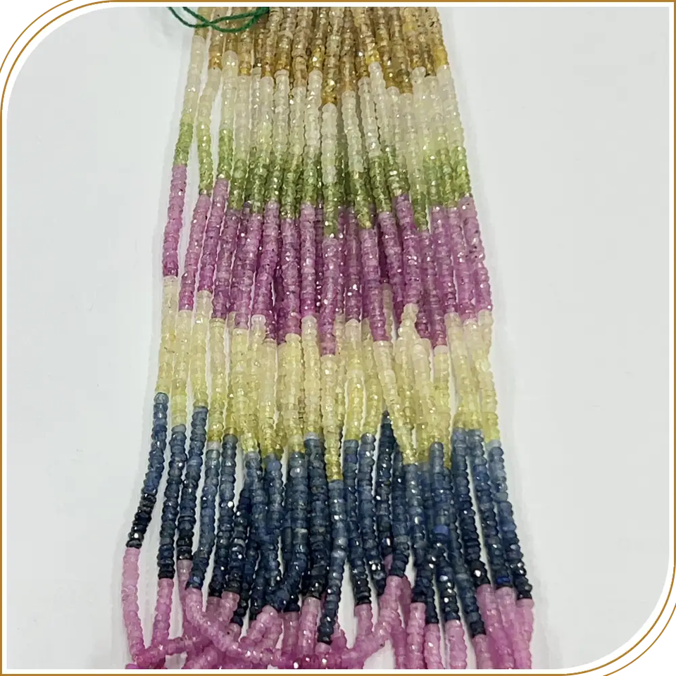 Perles Rondelle à Facettes Multi Saphir Naturel 3mm Brin 14 Pouces pour Bijoux DIY et Fournitures de Perles