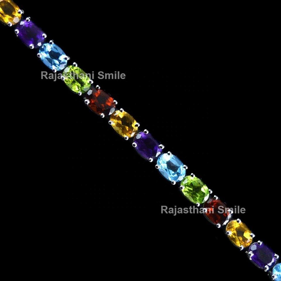 Bracelet tennis en argent sterling 925 avec pierres naturelles multicolores, pierres ovales de 7 x 5 mm, pour cadeaux, fêtes, mariages