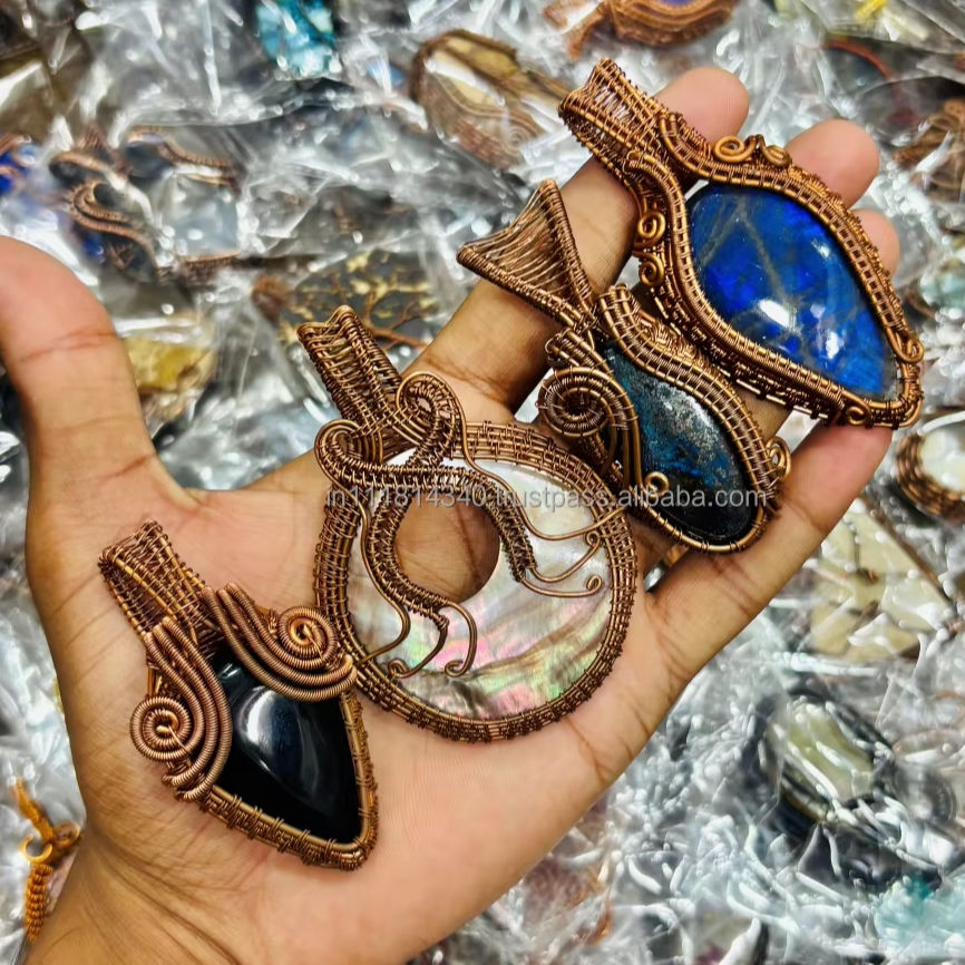 Nom du produit:Pierre multi naturelle fil de cuivre pendentif Lot pierres précieuses à la main