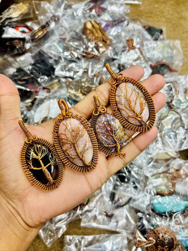 Pierre multi naturelle fil de cuivre pendentif Lot pierres précieuses à la main