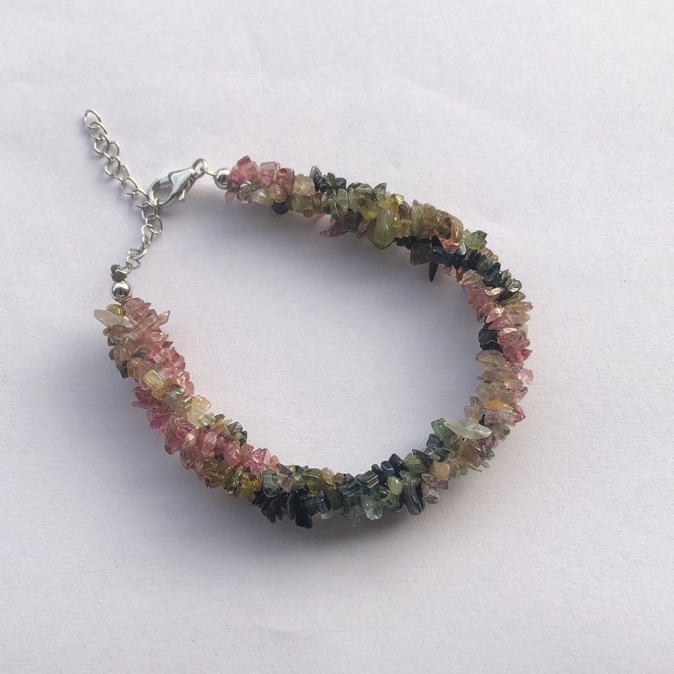 Nom du produit:Les puces non coupées de Tourmaline multi ont tordu le fermoir argenté du bracelet 925 de perles