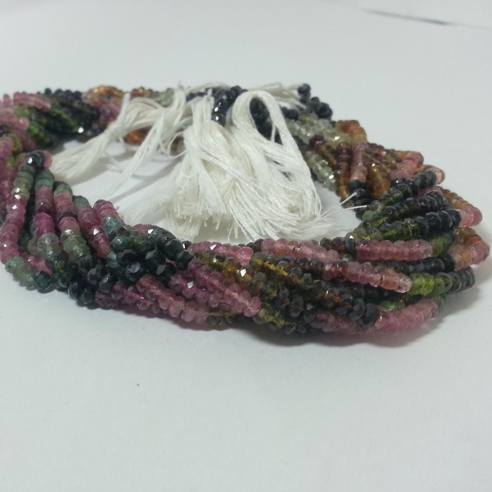 Nom du produit:Fil de perles de pierres précieuses, tourmalines naturelles multicolores, rondelles à facettes