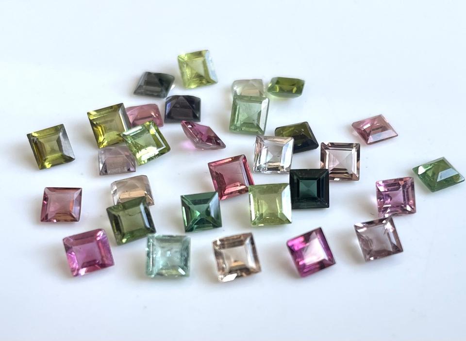 Tourmaline multicolore naturelle coupe carrée 4mm à facettes de qualité supérieure-Coupe carrée en tourmaline multicolore en vrac