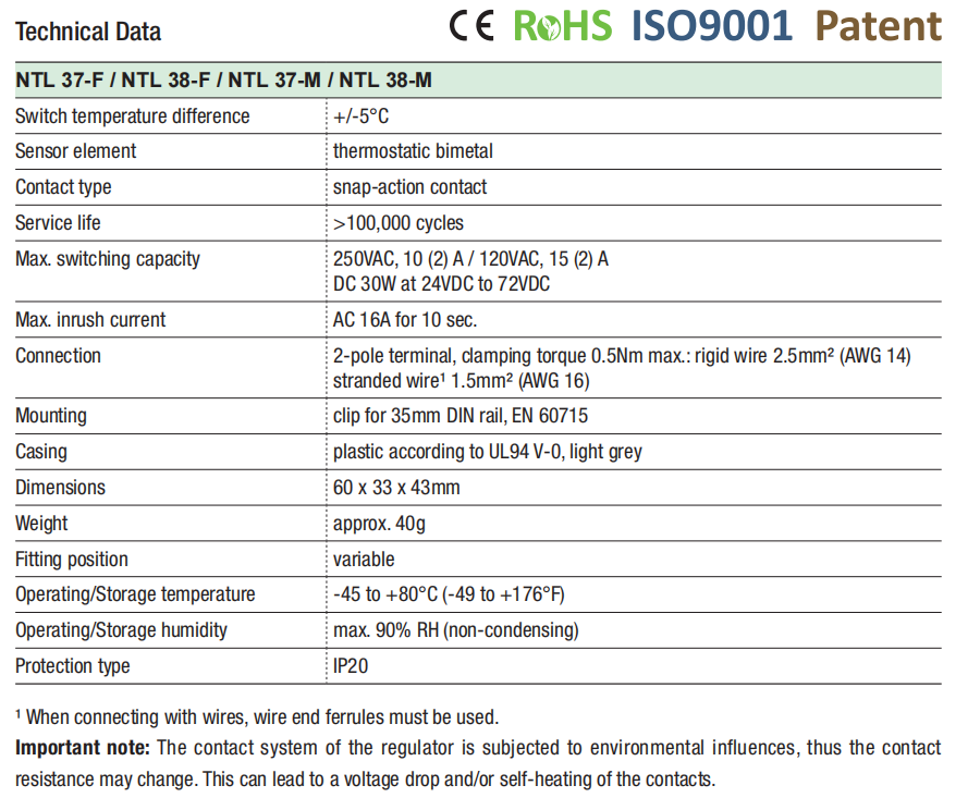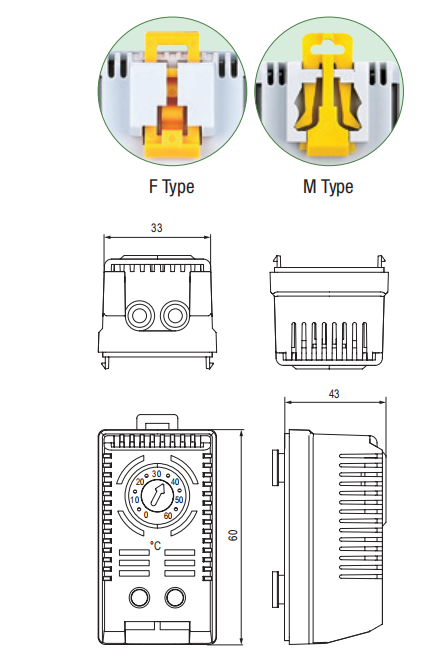 Thermostat compact naturel NT 38-F, thermostat automatique réglable à température constante