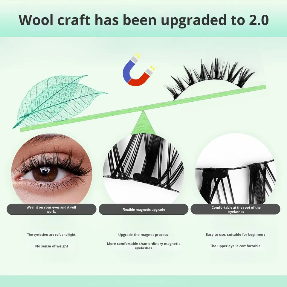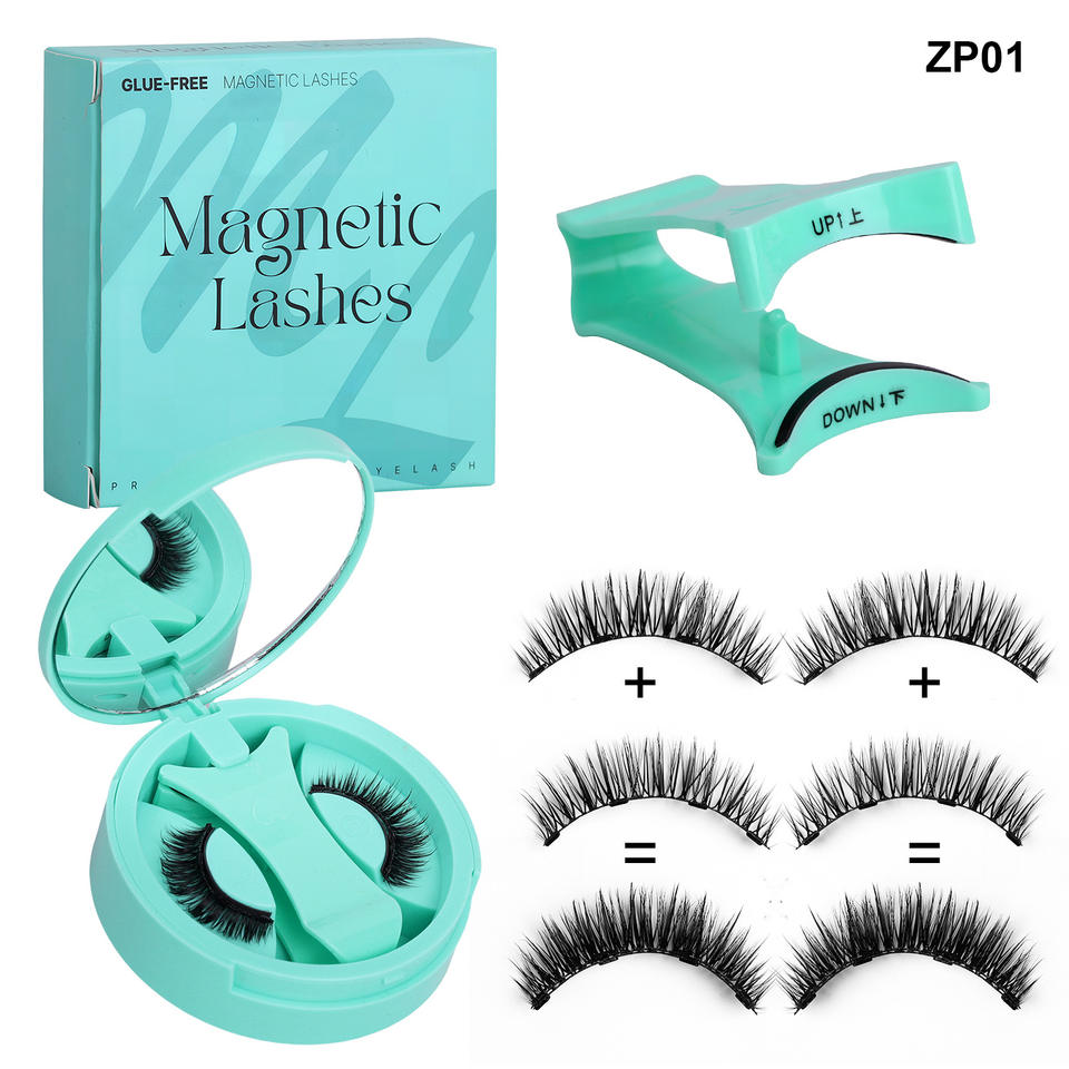 Faux Cils Magnétiques Naturels avec 4 Aimants Boîte Cercle Miroir et Applicateur Réutilisable Haut et Bas Faux Cils