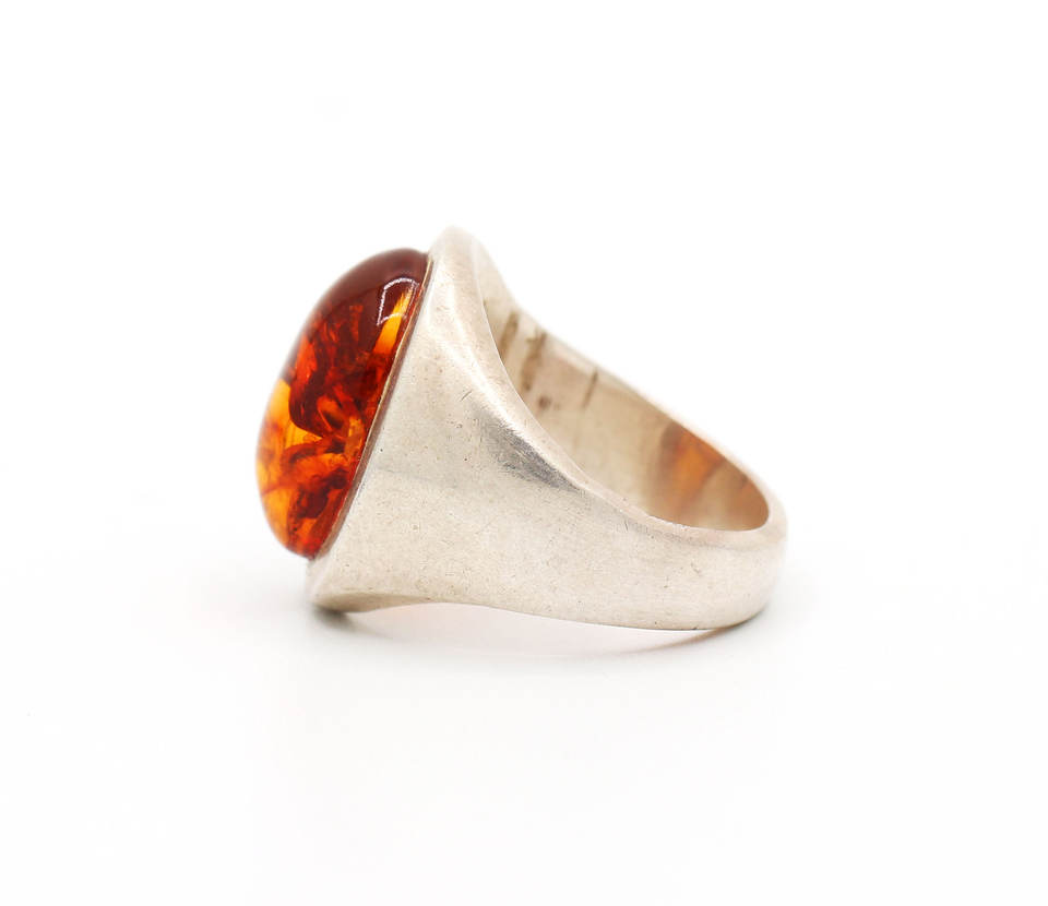 Bague en argent avec pierres précieuses en ambre baltique