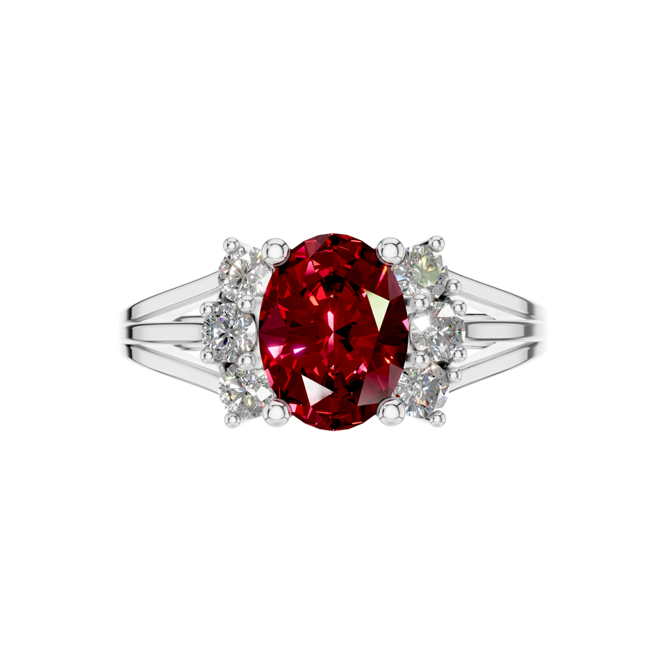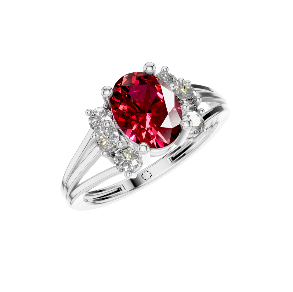 Bague unique en diamant et pierres précieuses avec halo de rubis naturel