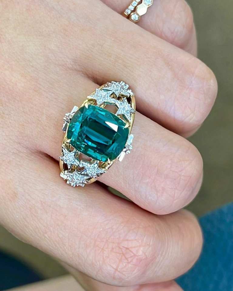 Bague de cocktail étoile tourmaline lagon ovale naturelle 5.92ct Pave Zircon AU750 argent sterling jaune 925 or 14 carats