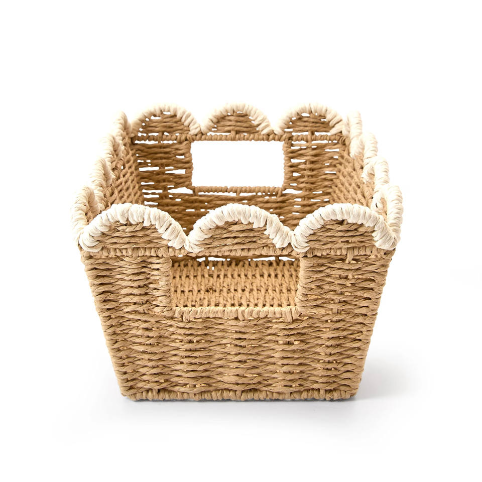 Panier en papier naturel, forme festonnée – Panier de rangement fait main, fournisseur Vietnamien