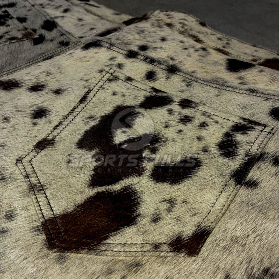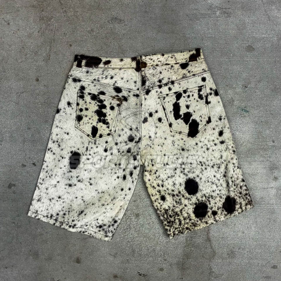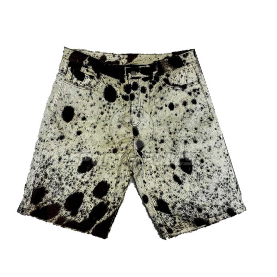 Shorts en toile décontractés à motif naturel, taille mi-haute, en cuir à poils pour hommes, texture distinctive, cuir de vache fait à la main, séchage rapide