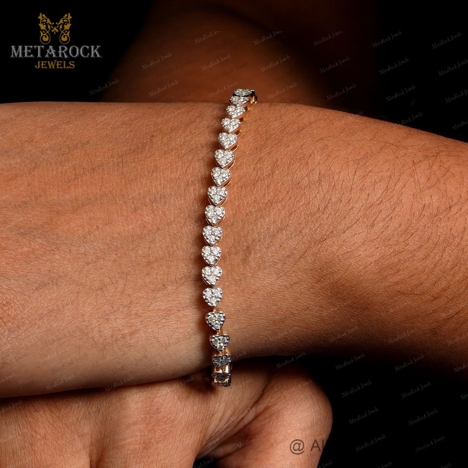 Nom du bracelet:Diamant Coeur 14k Or Tennis Bracelet Bijoux