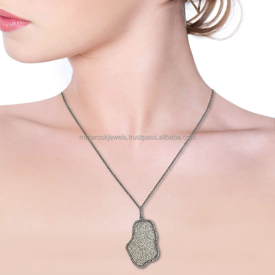 Diamant pavé naturel oxydé 925 argent fait à la main diamant noir naturel Designer pendentif bijoux en gros