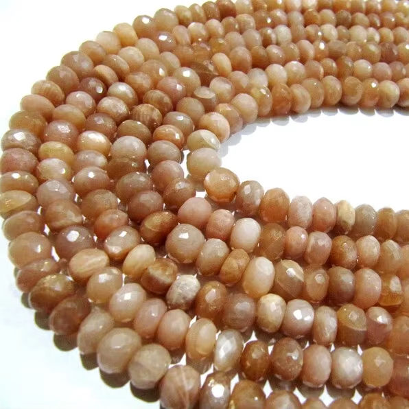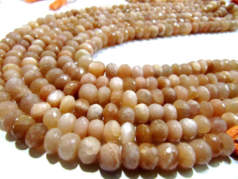 Perles à facettes Rondelle de pierre de lune pêche naturelle 8-9mm Strand 8 pouces de long