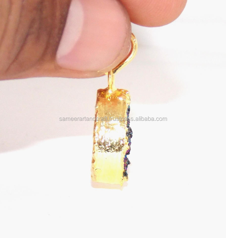 Natural Peacock Druzy Electroplated Gold Plated Pendant