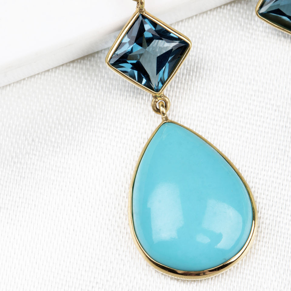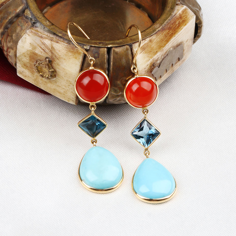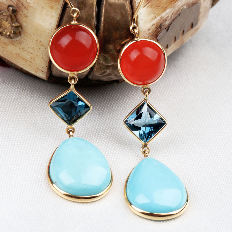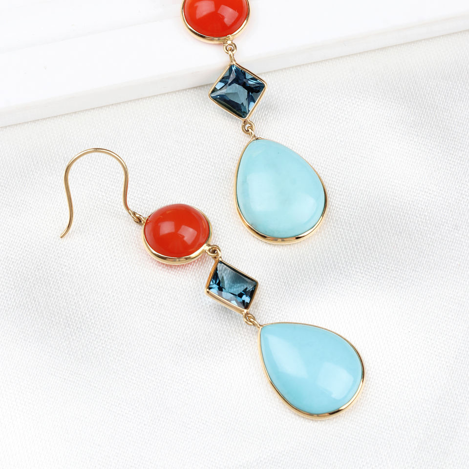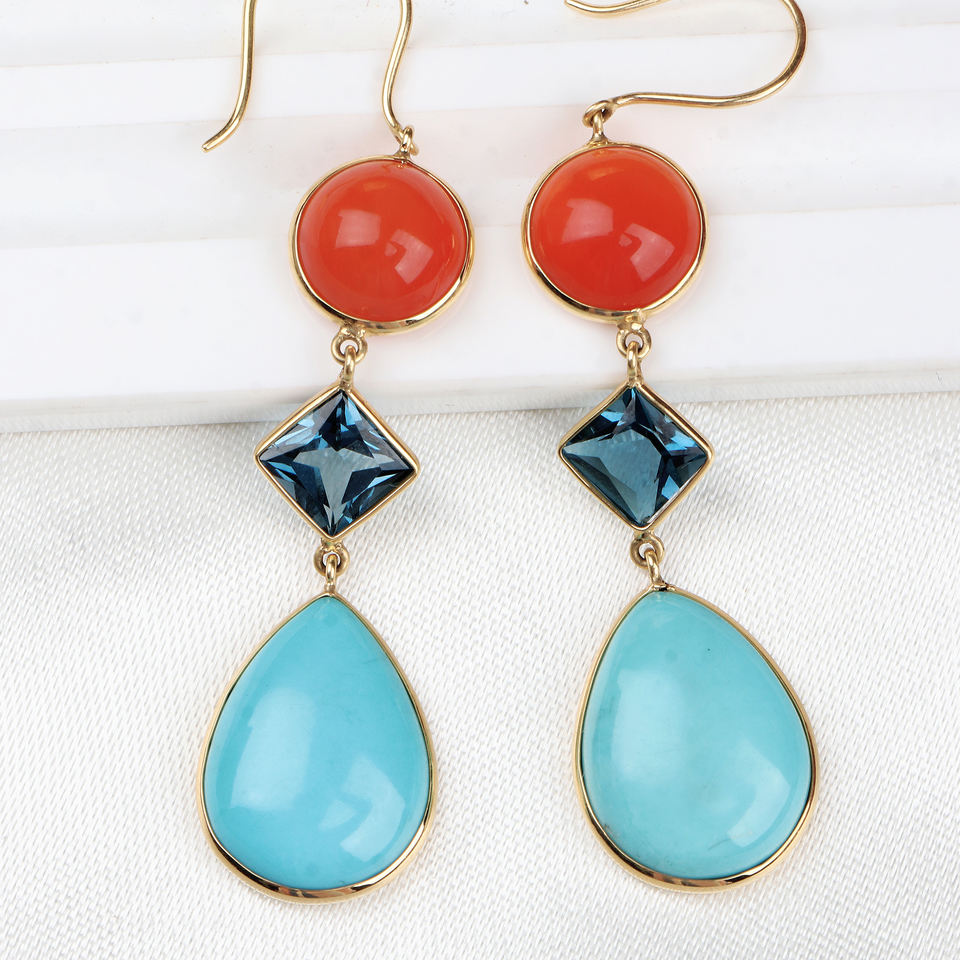 Nom du produit:Boucle D'oreille En Or Turquoise, Topaze Bleue Londres Et Corail