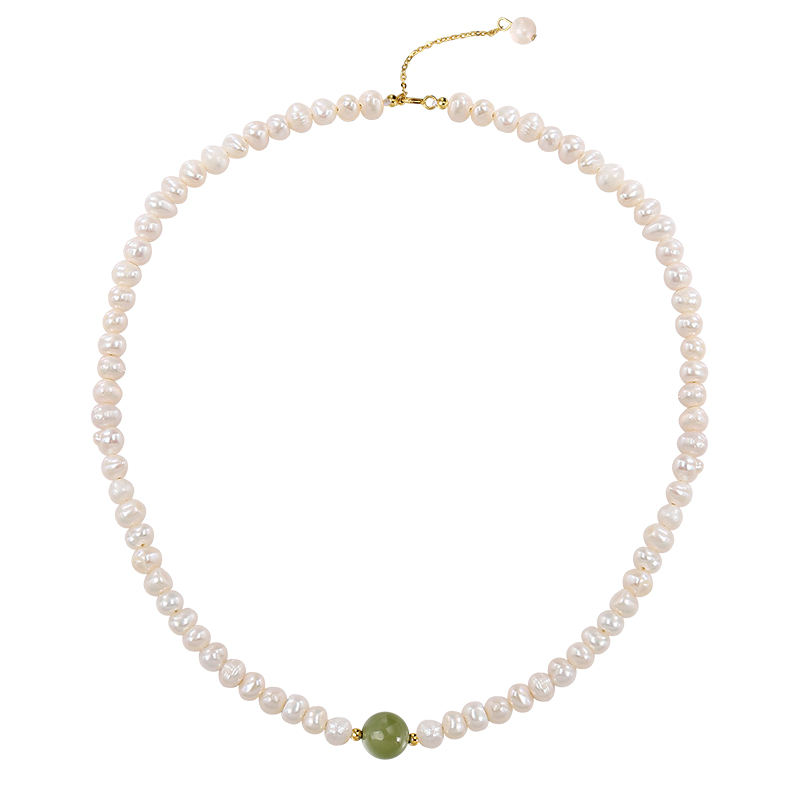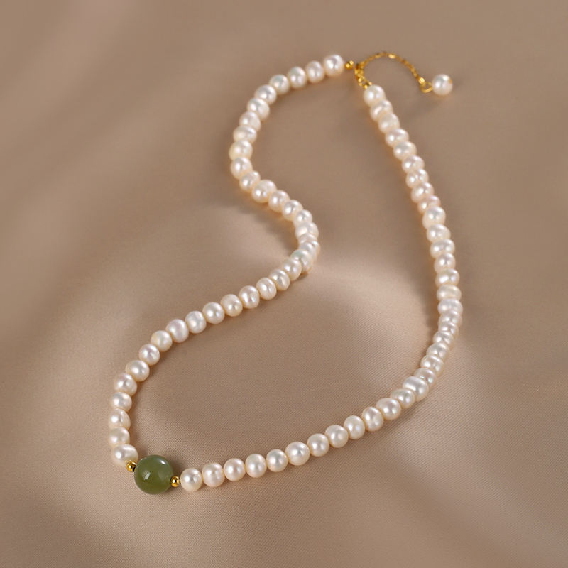 Natural Freshwater Pearl 925 Silver Women's Vintage Beaded Chain Necklace for Party/Wedding/Engagement