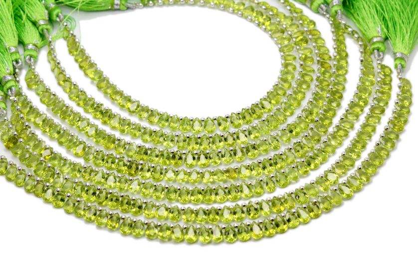 Perles artisanales de haute qualité en pierre de péridot naturelle taillée en forme de poire, 5x7 mm, environ 8 pouces, vertes