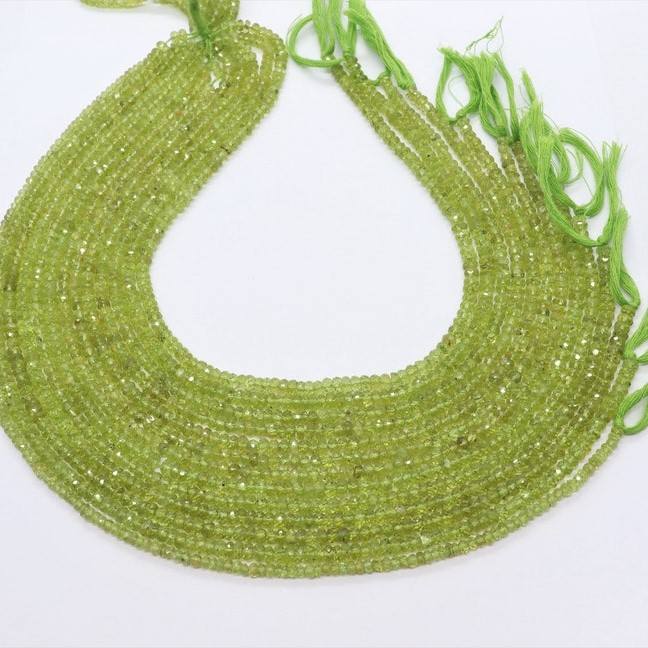 Perles de péridot naturel facettées en forme de rondelle, 4-4,5 mm, pierres précieuses de péridot, brin de 13 pouces, vente en gros de perles de péridot pour la création de bijoux