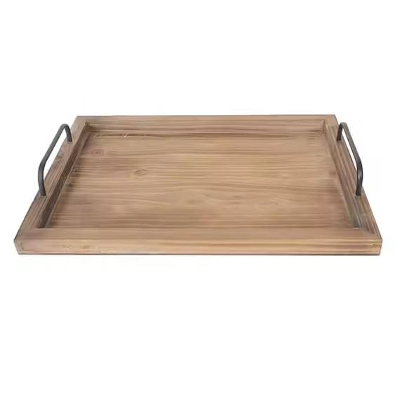 Plateau de service rectangulaire en bois de pin naturel avec poignées en métal-Parfait pour les repas à la maison et au restaurant
