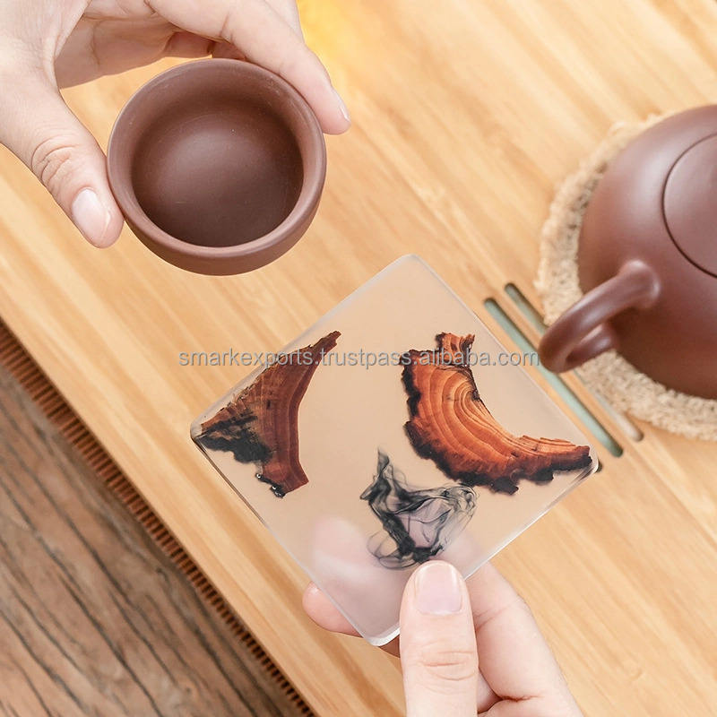 Ensemble de dessous-de-verre en résine de bois de pin naturel avec un design classique et unique de grain, écologique pour la cuisine, la salle à manger, la maison, les cadeaux