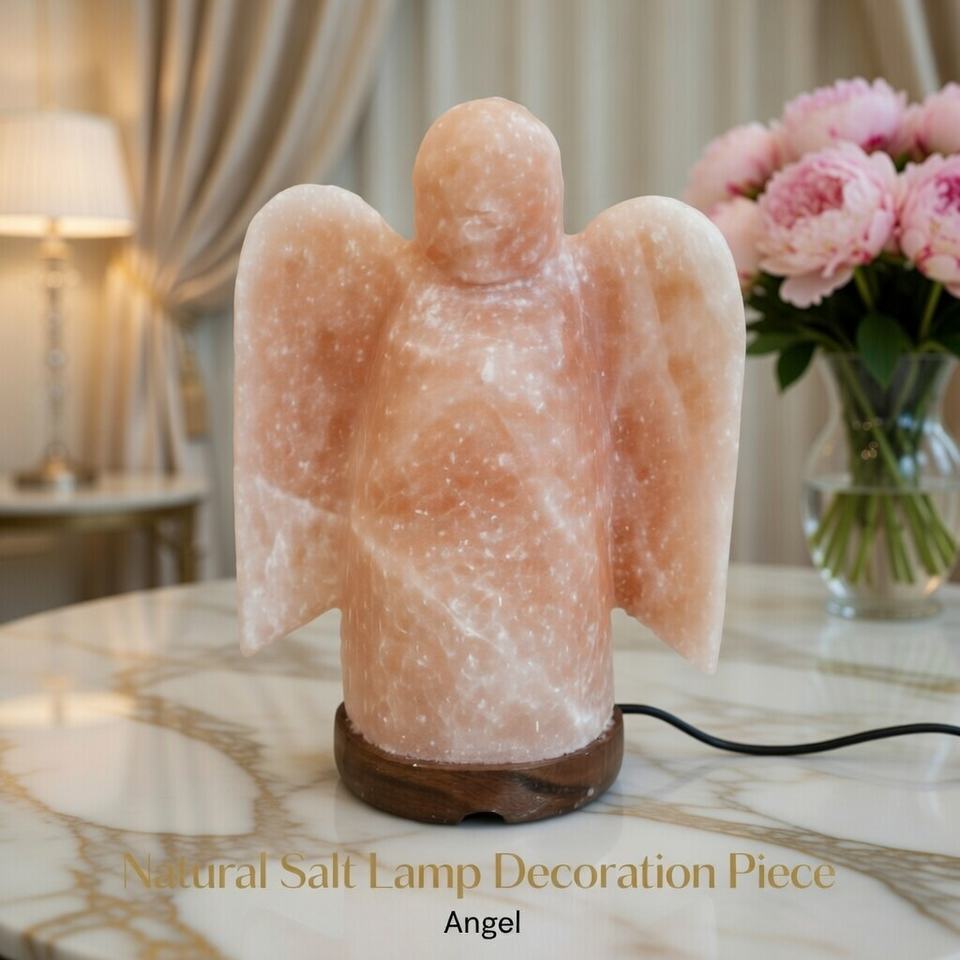 Lampe de sel rose de l'Himalaya naturelle, décoration ange faite à la main, veilleuse en cristal de roche, purificateur d'air, cadeau portable pour la maison et le spa, favorisant la guérison