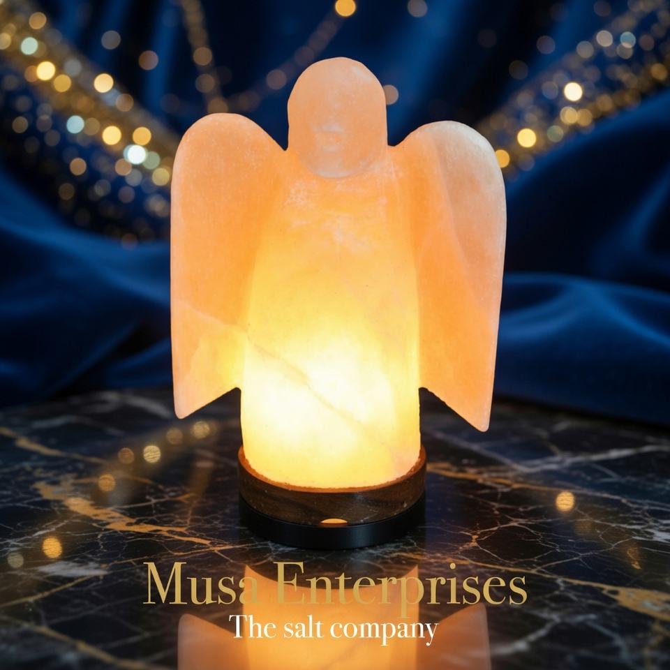 Lampe de sel rose de l'Himalaya naturelle, sculptée à la main en forme d'ange, pièce décorative en cristal, veilleuse, purificateur d'air, portable, bien-être