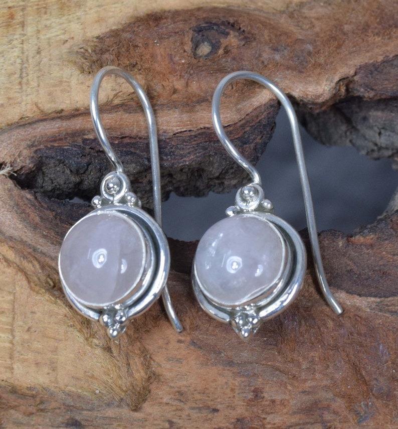 Quartz Rose Rose Naturel Octobre Pierre De Naissance 925 Sterling Silver Gemstone Boucles D'oreilles Bijoux Faits À La Main Cadeau Pour Ses Boucles D'oreilles En Pierre