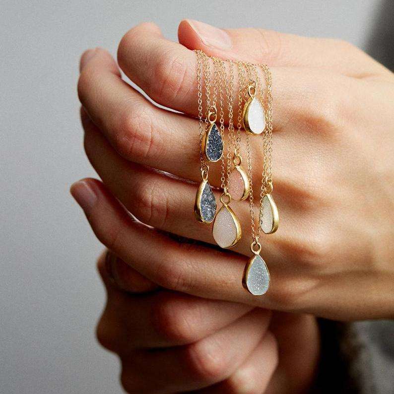 Supply Ability: Collier pendentif en forme de poire Druzy, couleur naturelle rose blanc noir