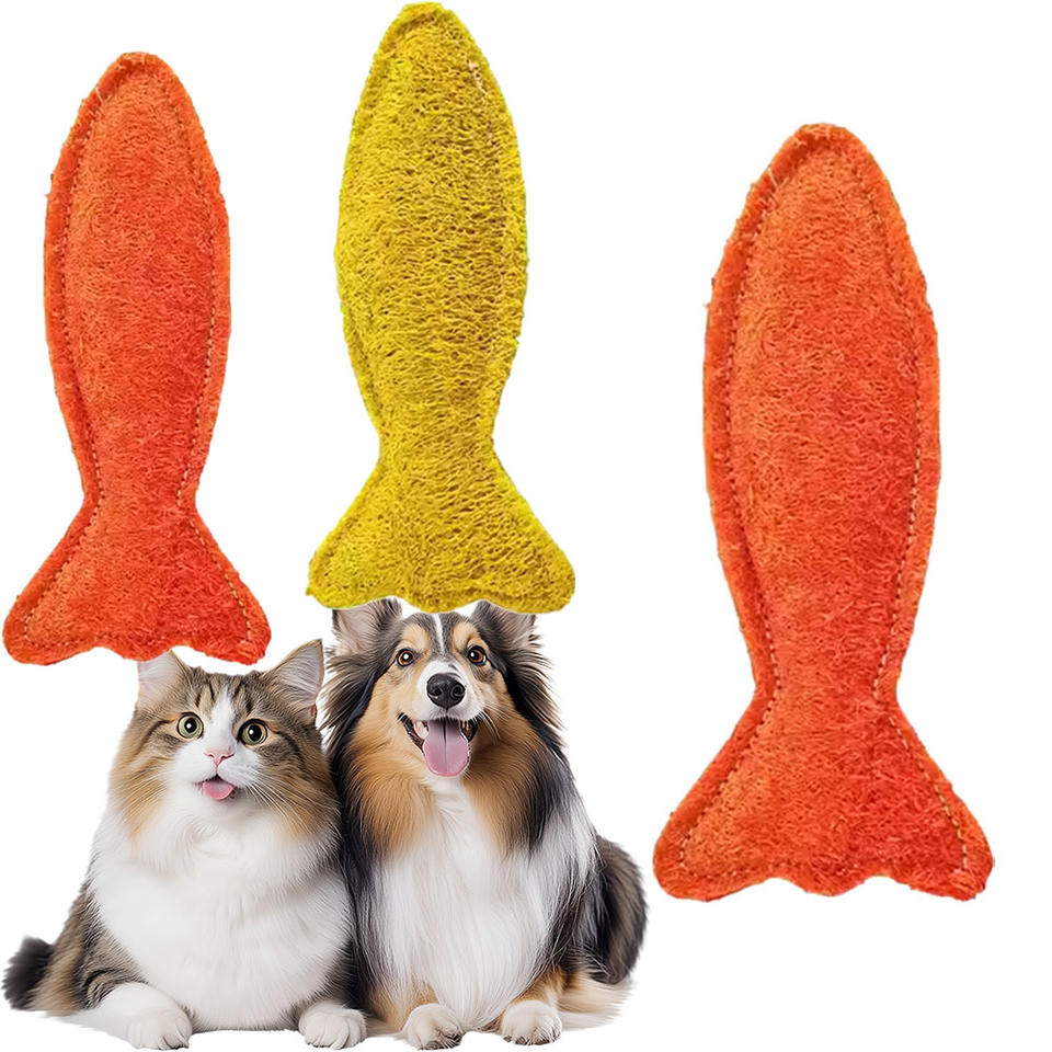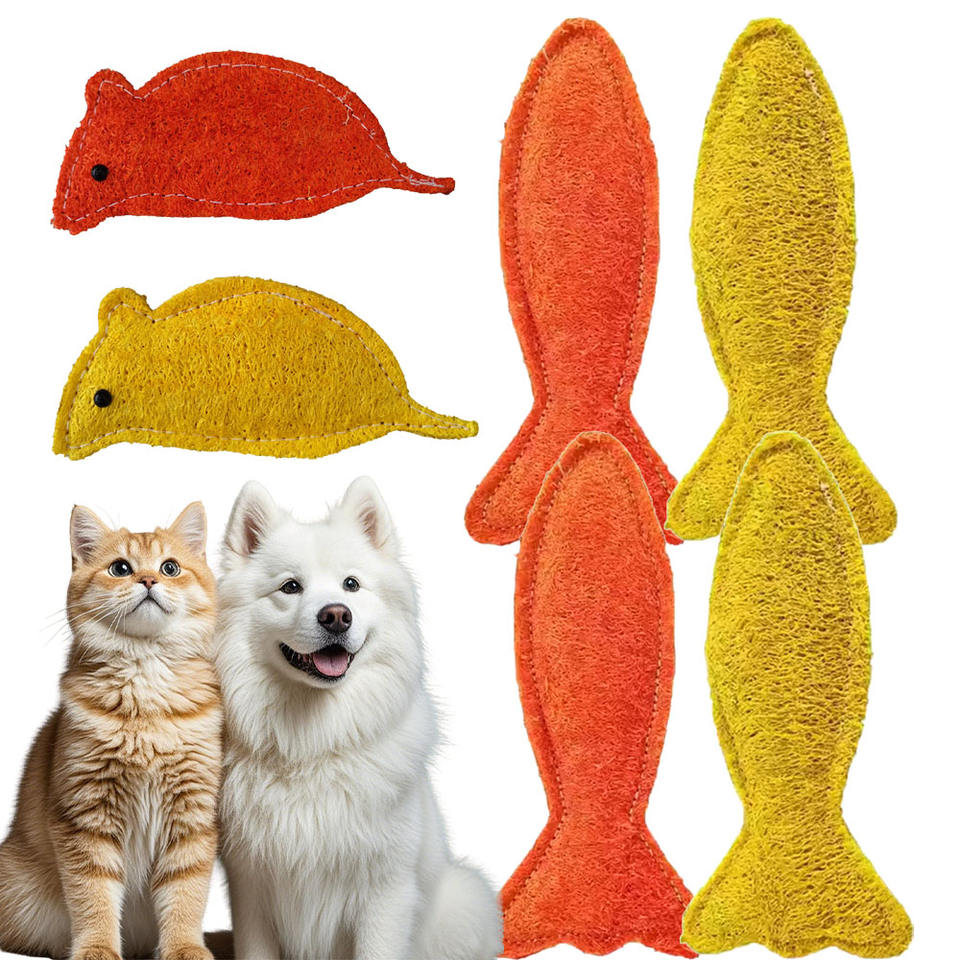 Jouet pour chat en fibres végétales naturelles, simulation de poisson, design moderne, jouet pour animaux de compagnie en loofah pour le nettoyage et le nettoyage des dents, emballé en carton