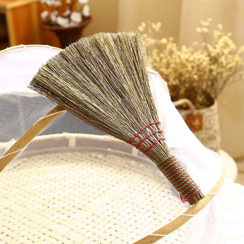 Mini balai en fibre végétale naturelle avec manche en bois, écologique, léger, outil de nettoyage pour la maison, pour le sol et l'extérieur