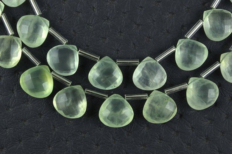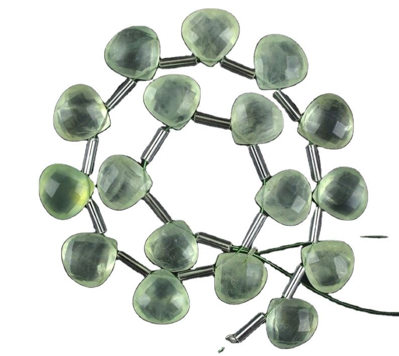 Pierre précieuse naturelle en préhnite à facettes en forme de cœur, perles de Briolette de qualité supérieure, fabrication de bijoux, beau cristal de pierre