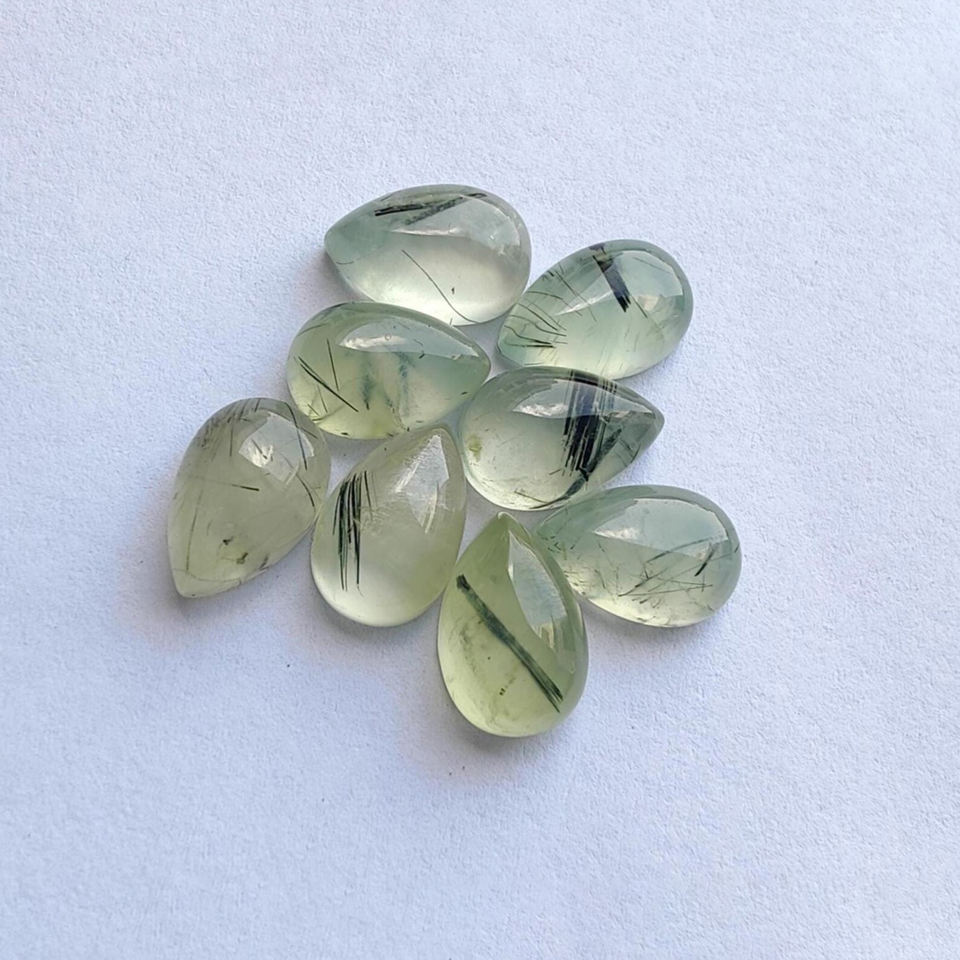 Cabochon de Prehnite Rutile Naturelle, Calibré, à Dos Plat, Forme Goutte d'eau, Forme Poire, Pierre Gemme en Vrac, Cabochon en Gros