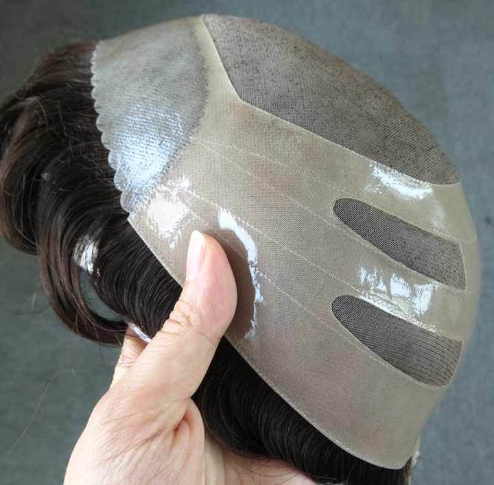 Toupet professionnel naturel articles PU et mono base topper hommes cheveux stock 100% système de remplacement de cheveux humains hommes toupet perruque Oscar