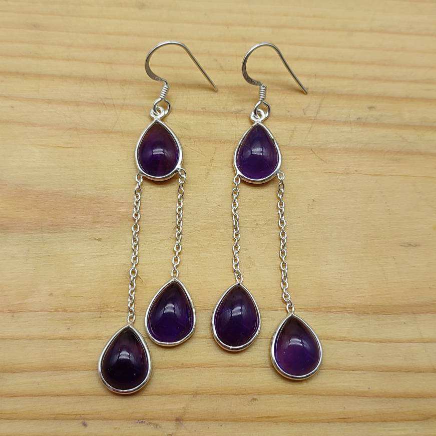 Boucle d'oreille enfileur d'améthyste violette naturelle délicate faite à la main 925 boucle d'oreille en argent Sterling fait à la main bijoux de boucle d'oreille en argent de créateur