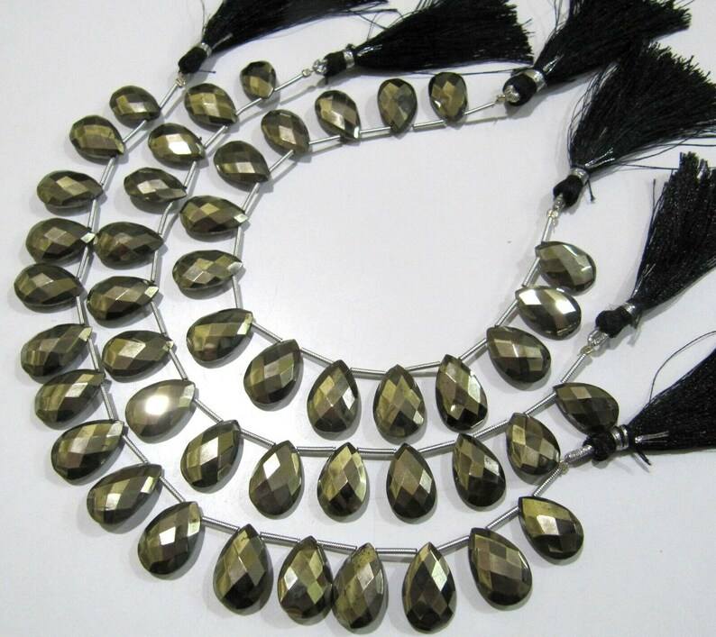 Eminent Jewel N Arts perles briolettes en pyrite naturelle facettées, poire 11×16 mm, fil de 8 pouces pour création de bijoux