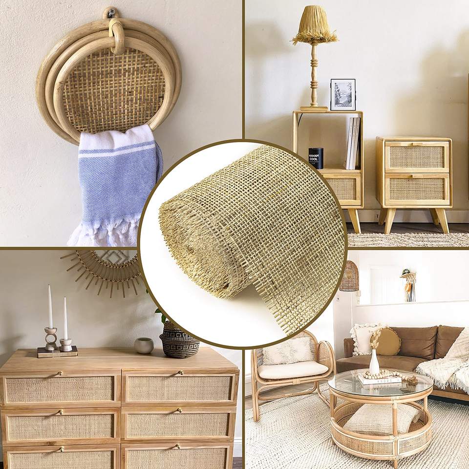 Rouleau de cannage en rotin naturel pour chaise, porte de placard, décoration de meubles, feuille de maille en rotin faite à la main pour la réparation de meubles