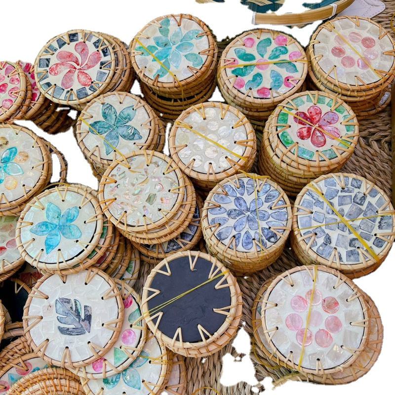 Sous-verre isolant en rotin naturel TUYET DUNG, style floral classique, décoration de vacances, cadeau, modèle FAD4