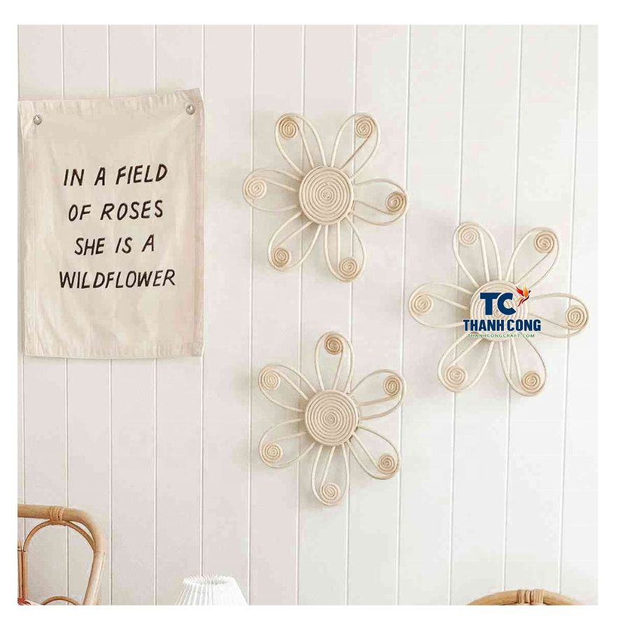 Décoration murale en forme de fleur en rotin naturel Ensemble écologique fait à la main pour chambres d'enfants et salon Vente en gros en vrac