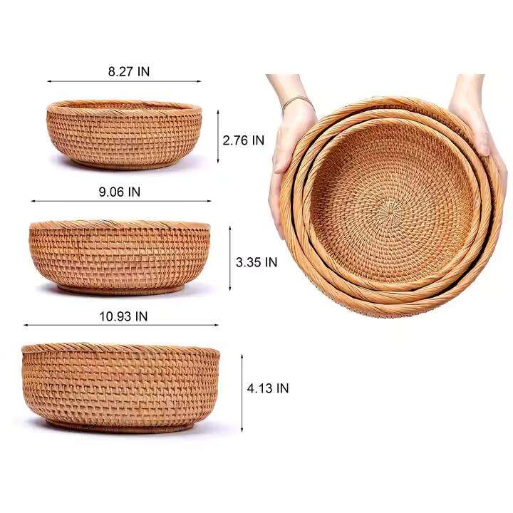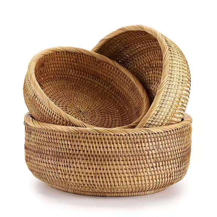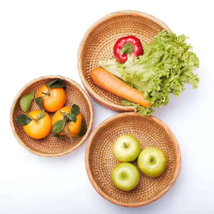 Paniers ronds tissés à la main en rotin naturel pour pain fruits et organisateur de stockage en osier pour salle à manger