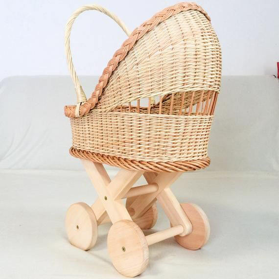 Panier de Moïse en rotin naturel tressé à la main avec poignées, berceau robuste et écologique pour bébé, poussettes pour poupées HNH Vietnam